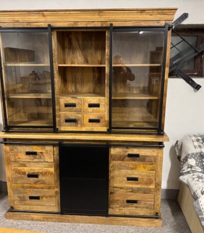 Stylowy drewniany kredens witryna 160cm seria Loft szufladki