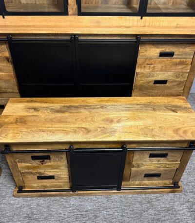 Szafka rtv drewno mango z przesuwnymi metalowymi drzwiami 200cm seria Loft