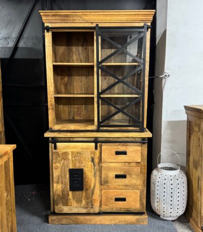 Każdy element tej kolekcji wykonany jest ręcznie z naturalnego drewna mango o pięknym, złocistym rysunku słojów. Czarna stalowa konstrukcja i przesuwne drzwi na metalowych prowadnicach nadają im wyjątkowego, fabrycznego stylu – solidnego, ale z duszą.