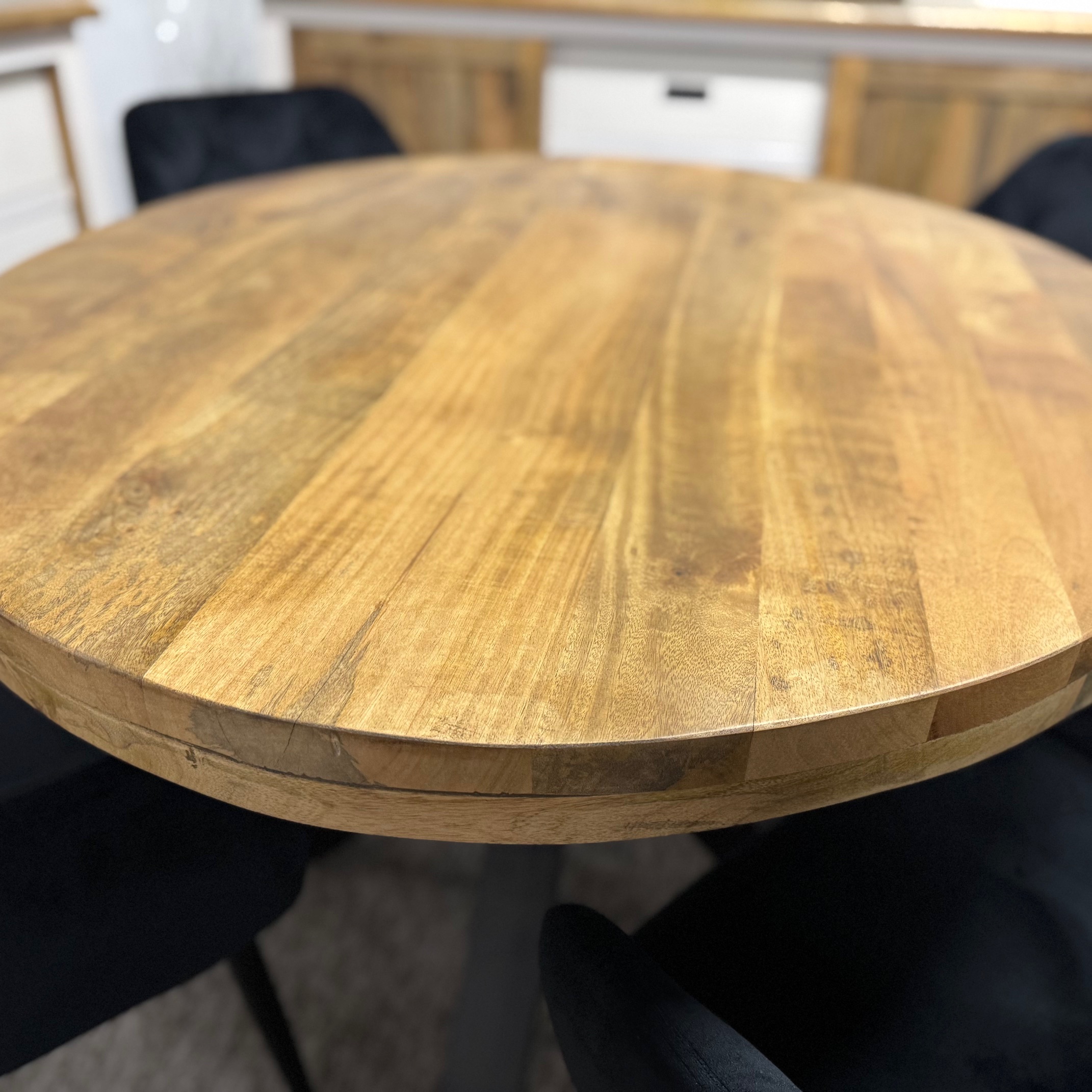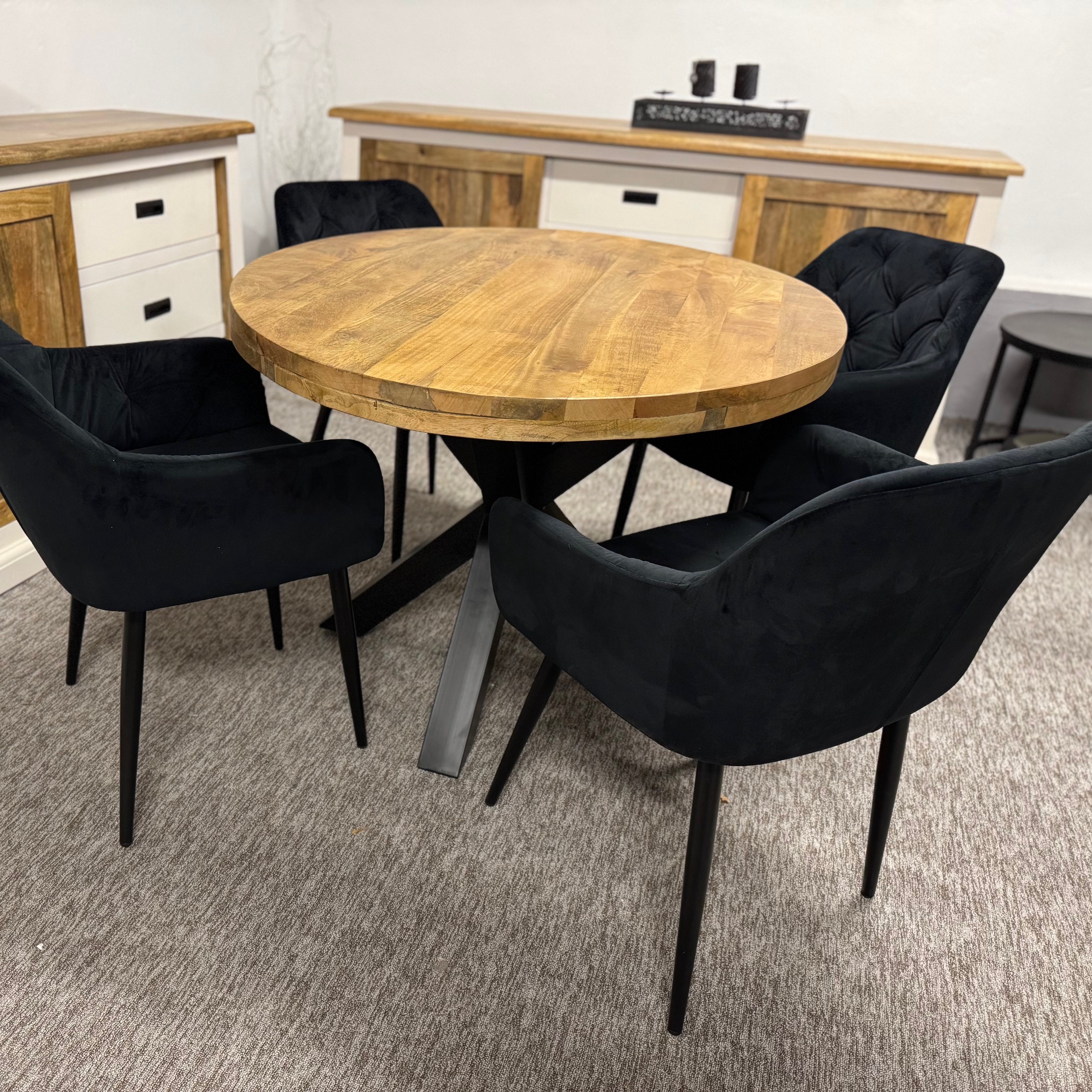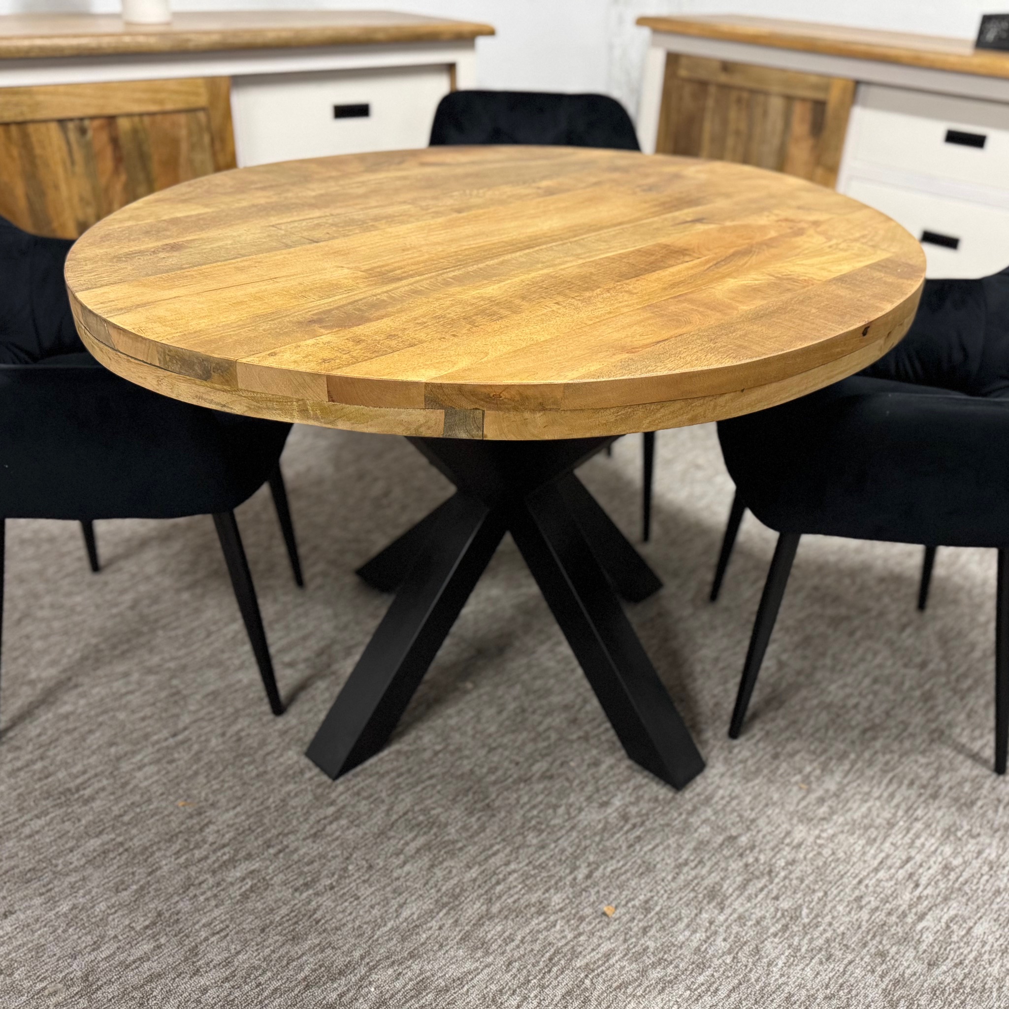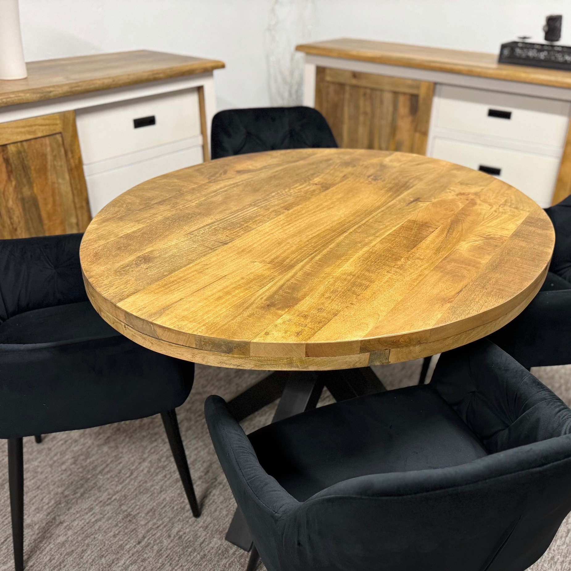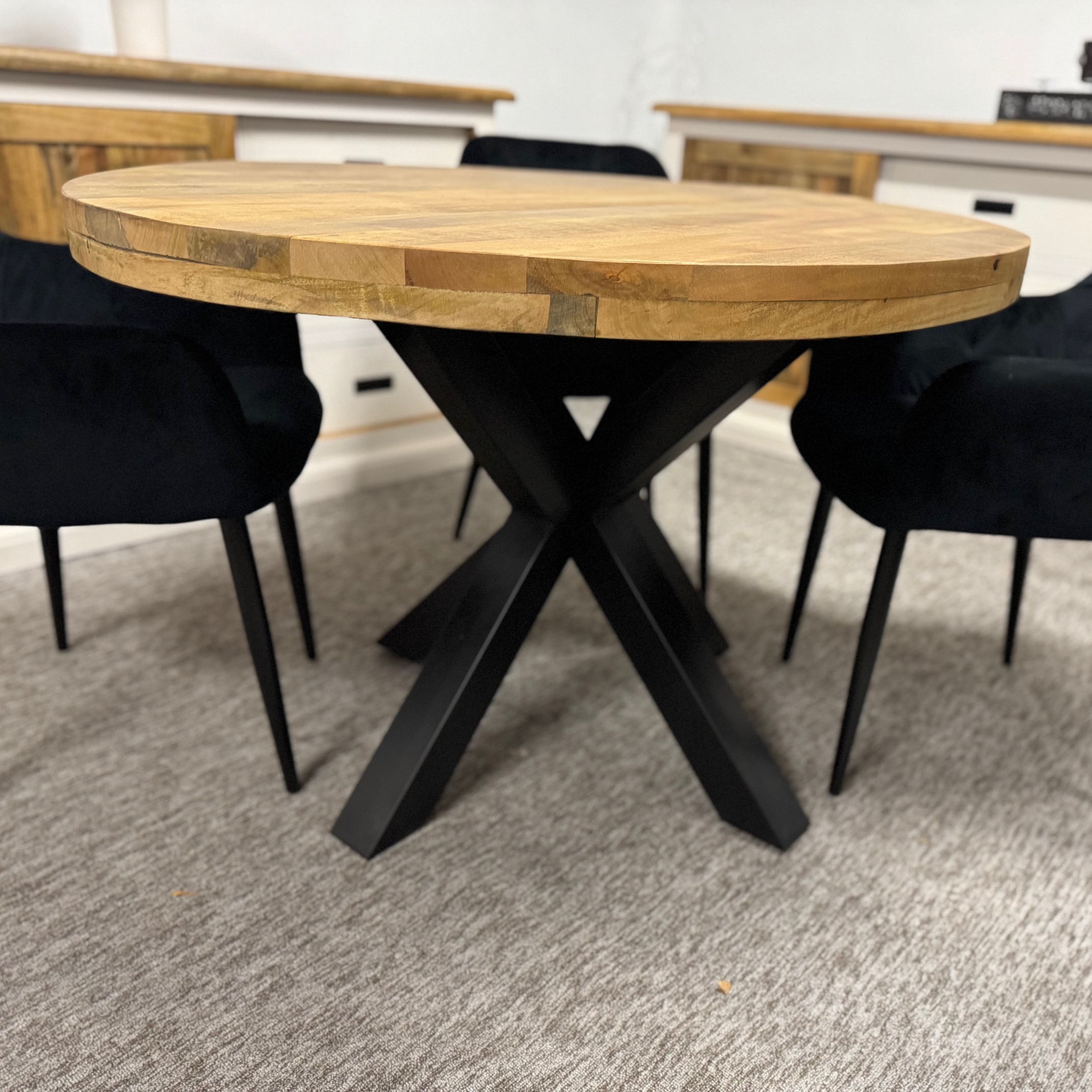 Nasz owalny stół do jadalni to prawdziwy hit. Ten piękny stół z drzewa mango charakteryzuje się solidnym blatem i matową, czarną nogą w kształcie matrix/pająk. W przeciwieństwie do prostokątnego stołu jadalnego, owalny stół doda Twojemu wnętrzu radosnego, przytulnego charakteru.