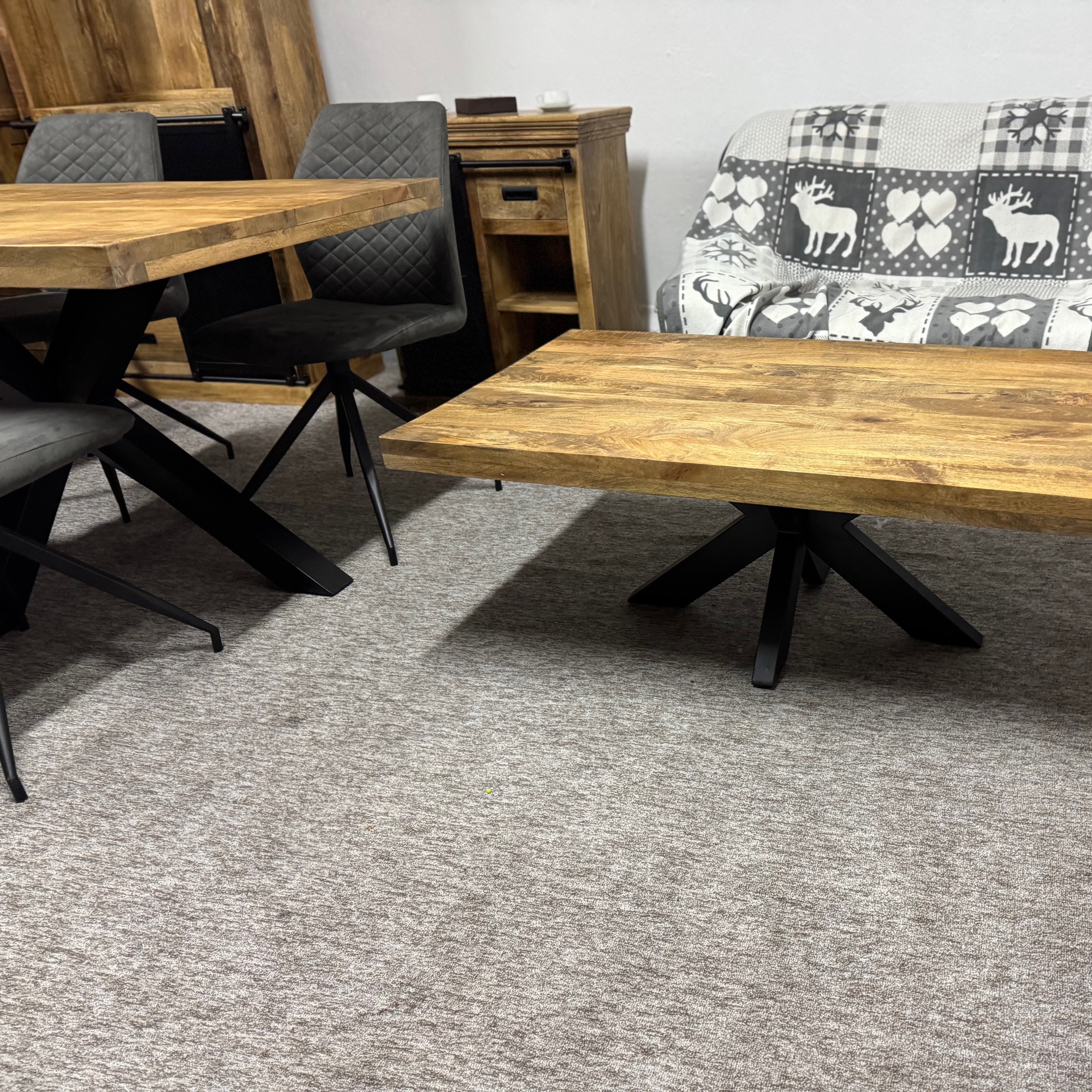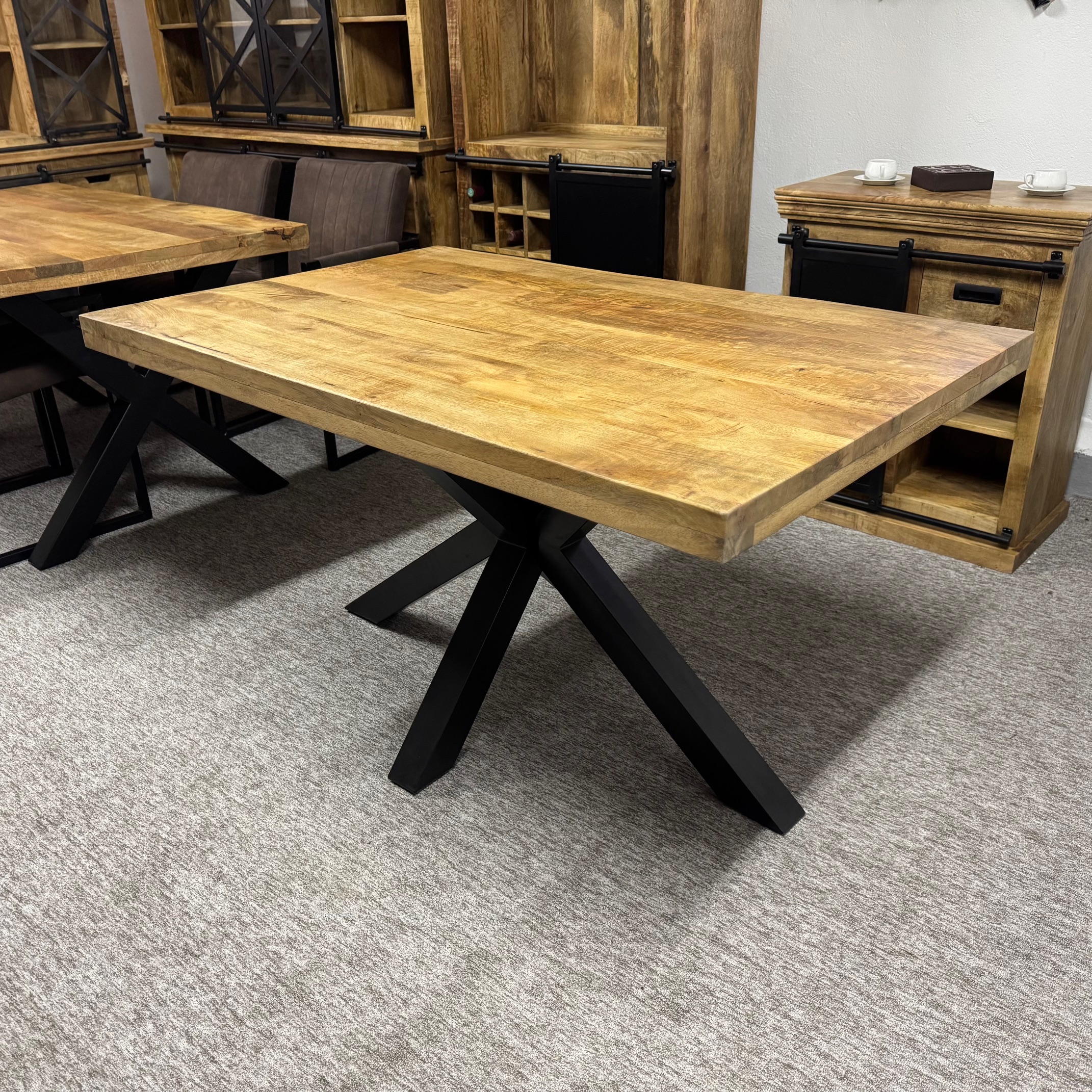 Nasz stół jadalniany wykonany jest z drewna mango i ma matowoczarną metalową ramę. Połączenie tych dwóch materiałów tworzy industrialny styl z ciepłą, przyjazną atmosferą.