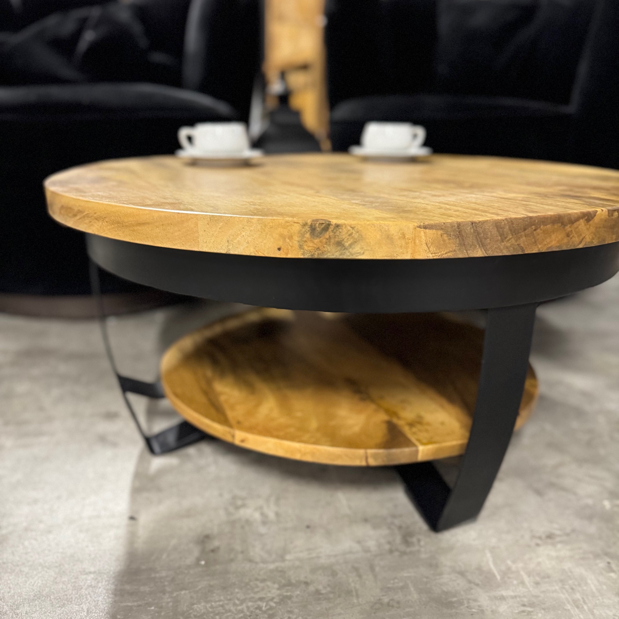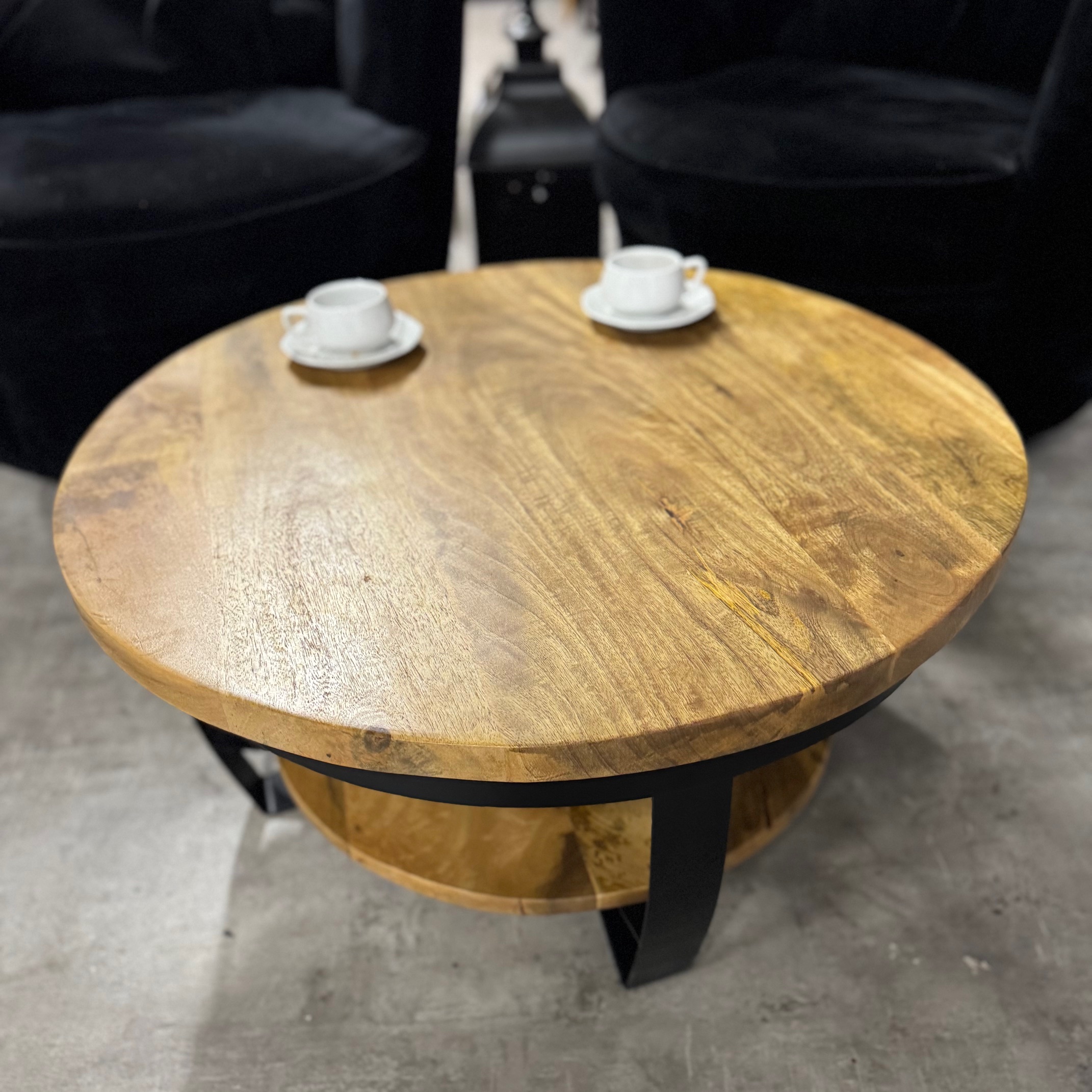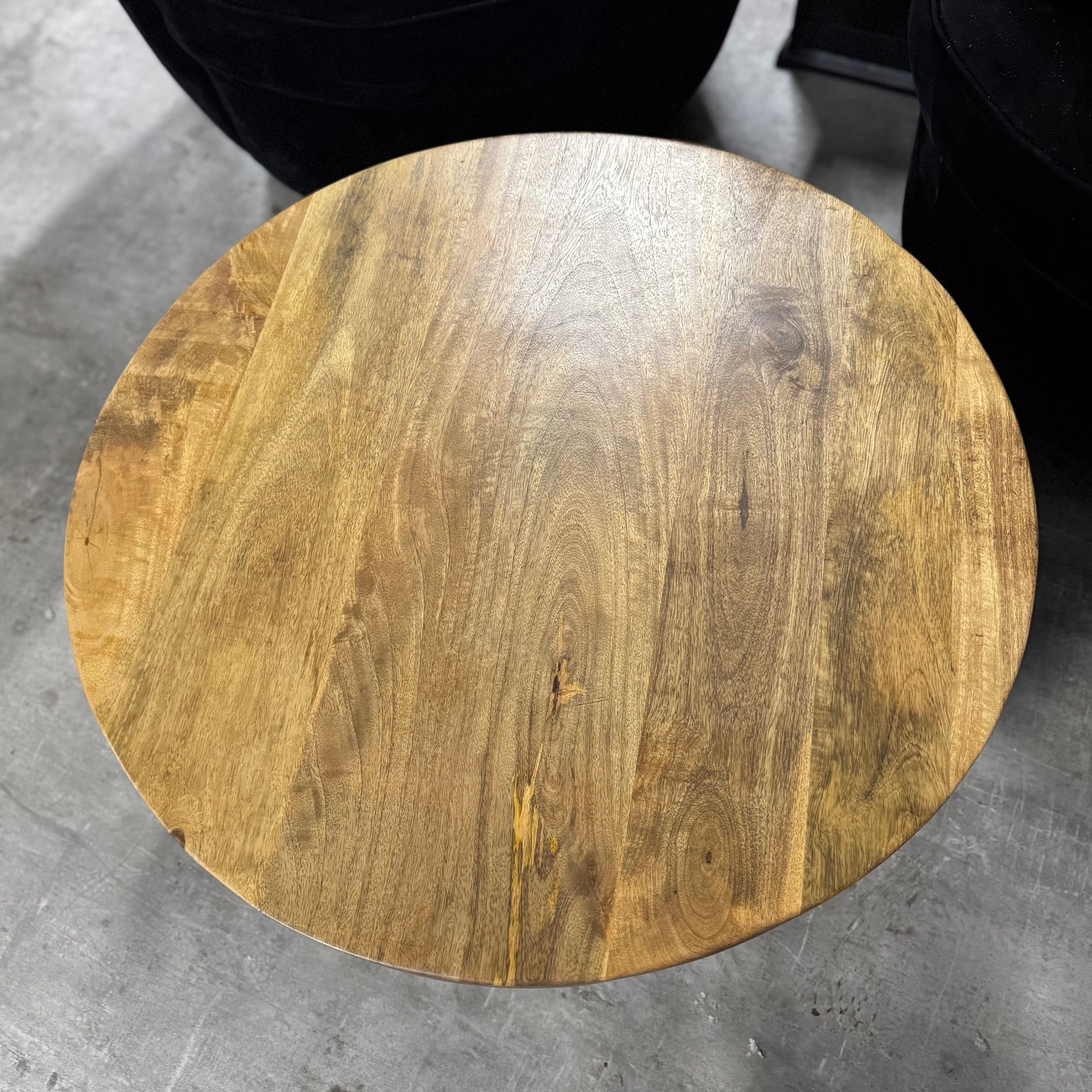 Stylowy okrągły stolik do salonu Naturalne drewno mango od MangoMeble wnosi ciepły, naturalny akcent do każdego wnętrza. Okrągły blat z litego, naturalnego drewna mango z widocznym usłojeniem sprawia, że ​​ten kompaktowy stolik kawowy emanuje czystą prostotą i ponadczasowym urokiem. Elegancka metalowa podstawa jest lekka i elegancka, idealna do stworzenia lekkiej atmosfery bez uszczerbku dla solidności.