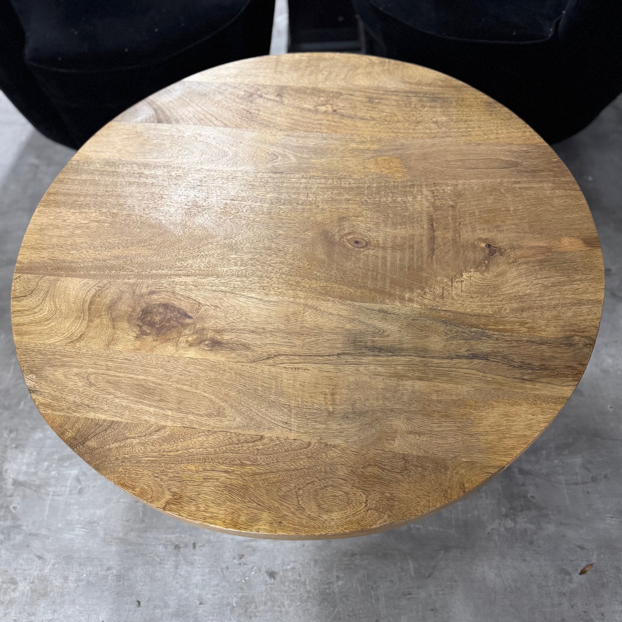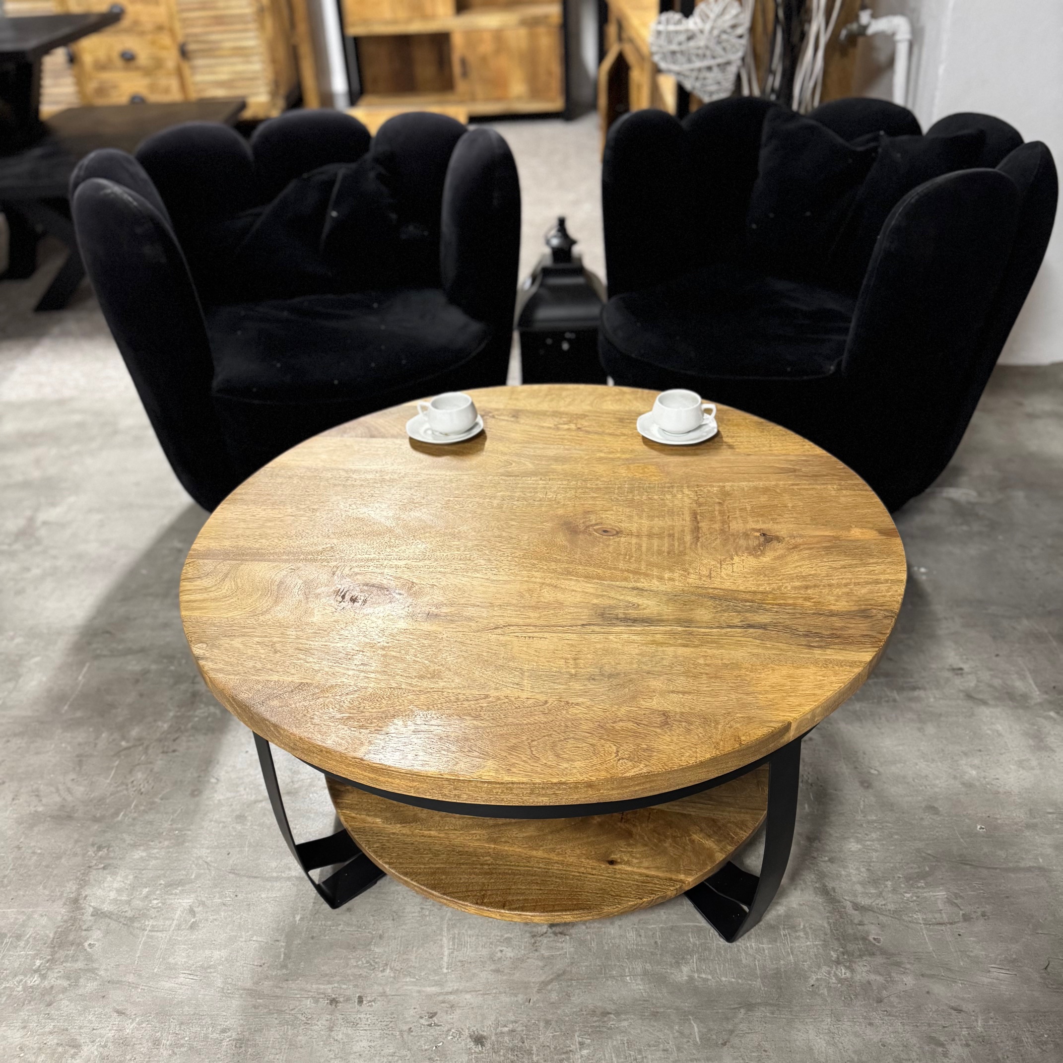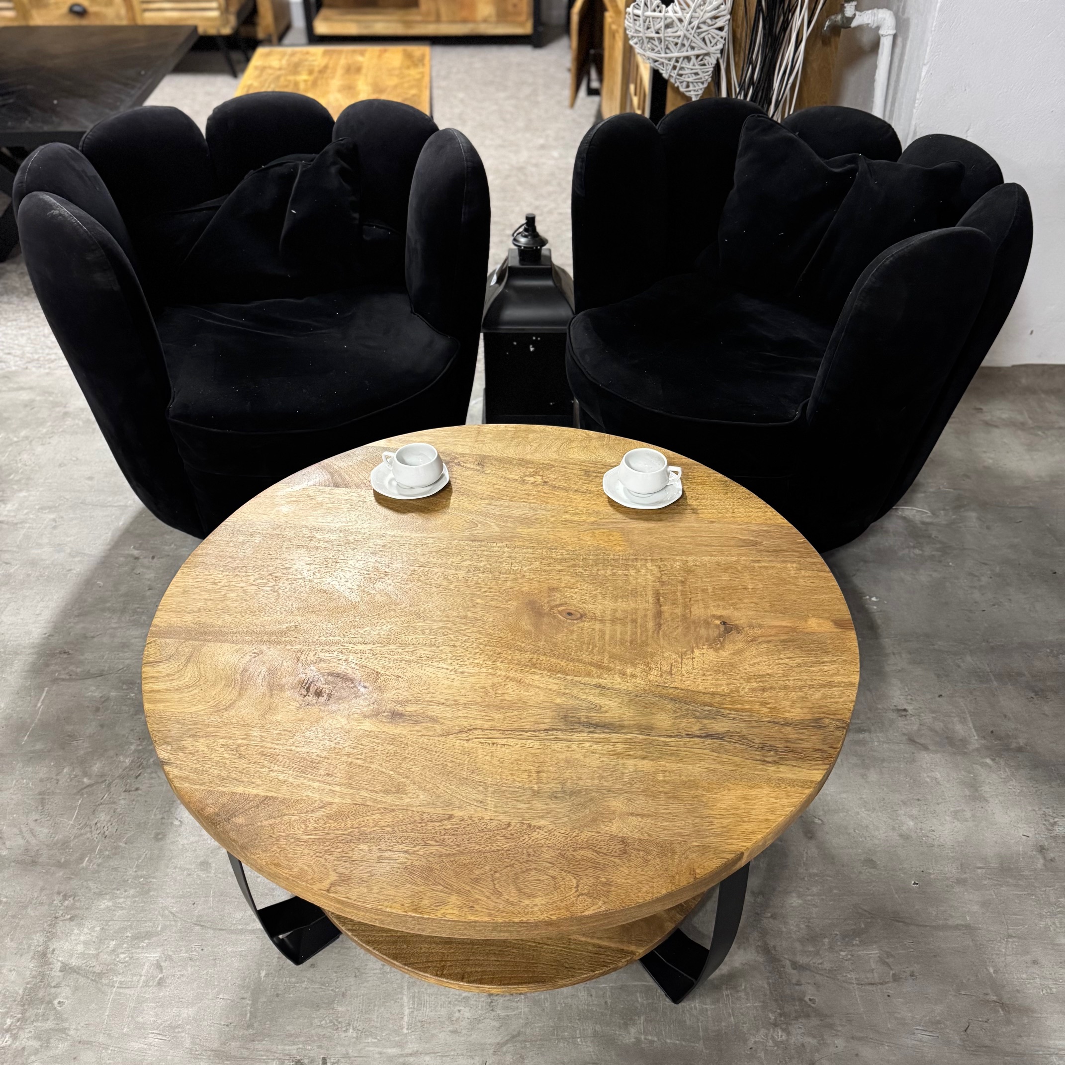 Stylowy okrągły stolik kawowy Naturalne drewno mango od MangoMeble wnosi ciepły, naturalny akcent do każdego wnętrza. Okrągły blat z litego, naturalnego drewna mango z widocznym usłojeniem sprawia, że ​​ten kompaktowy stolik kawowy emanuje czystą prostotą i ponadczasowym urokiem. Elegancka metalowa podstawa jest lekka i elegancka, idealna do stworzenia lekkiej atmosfery bez uszczerbku dla solidności.