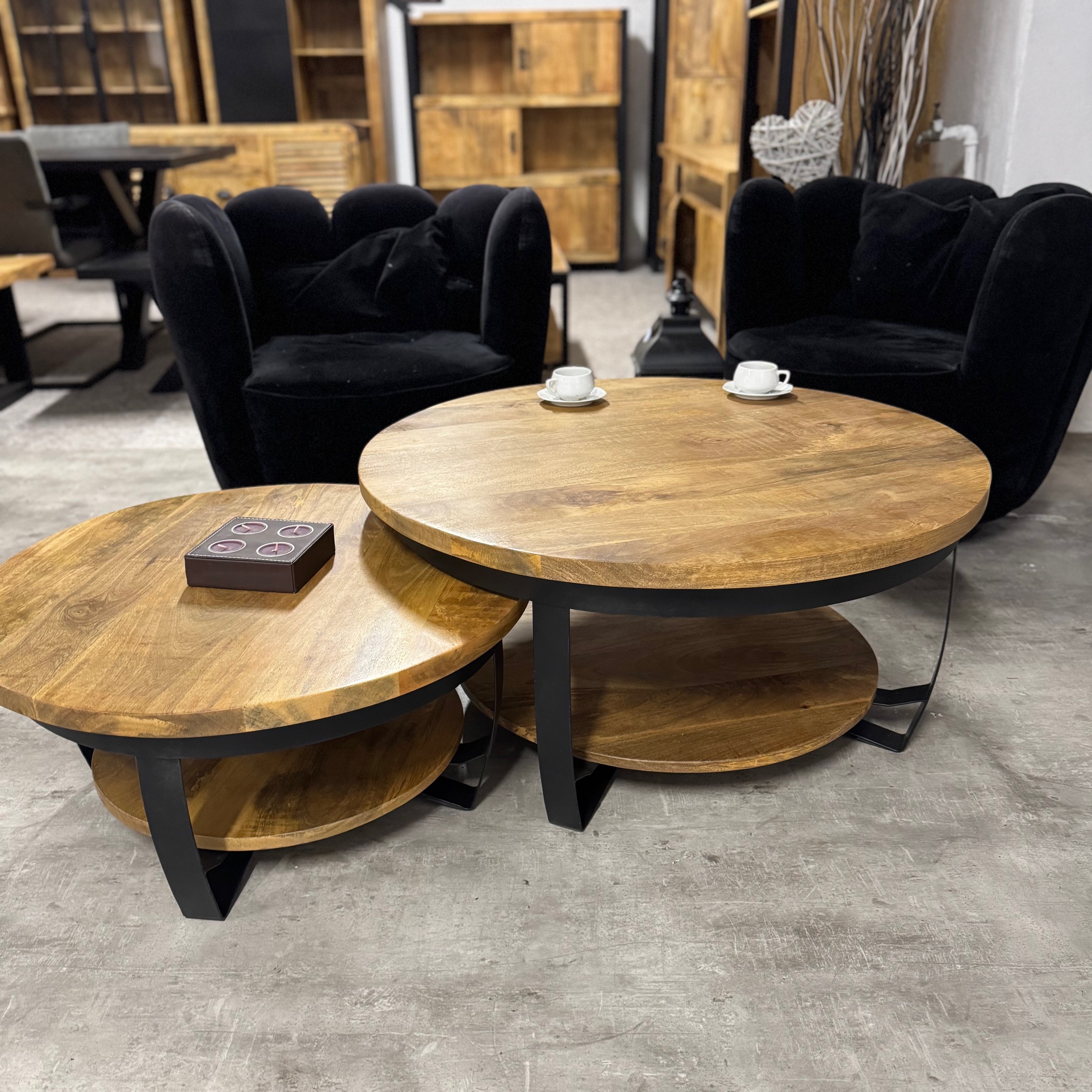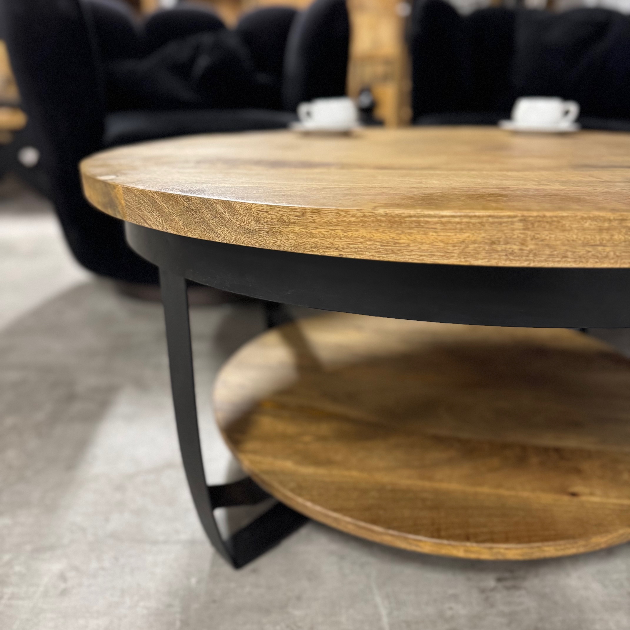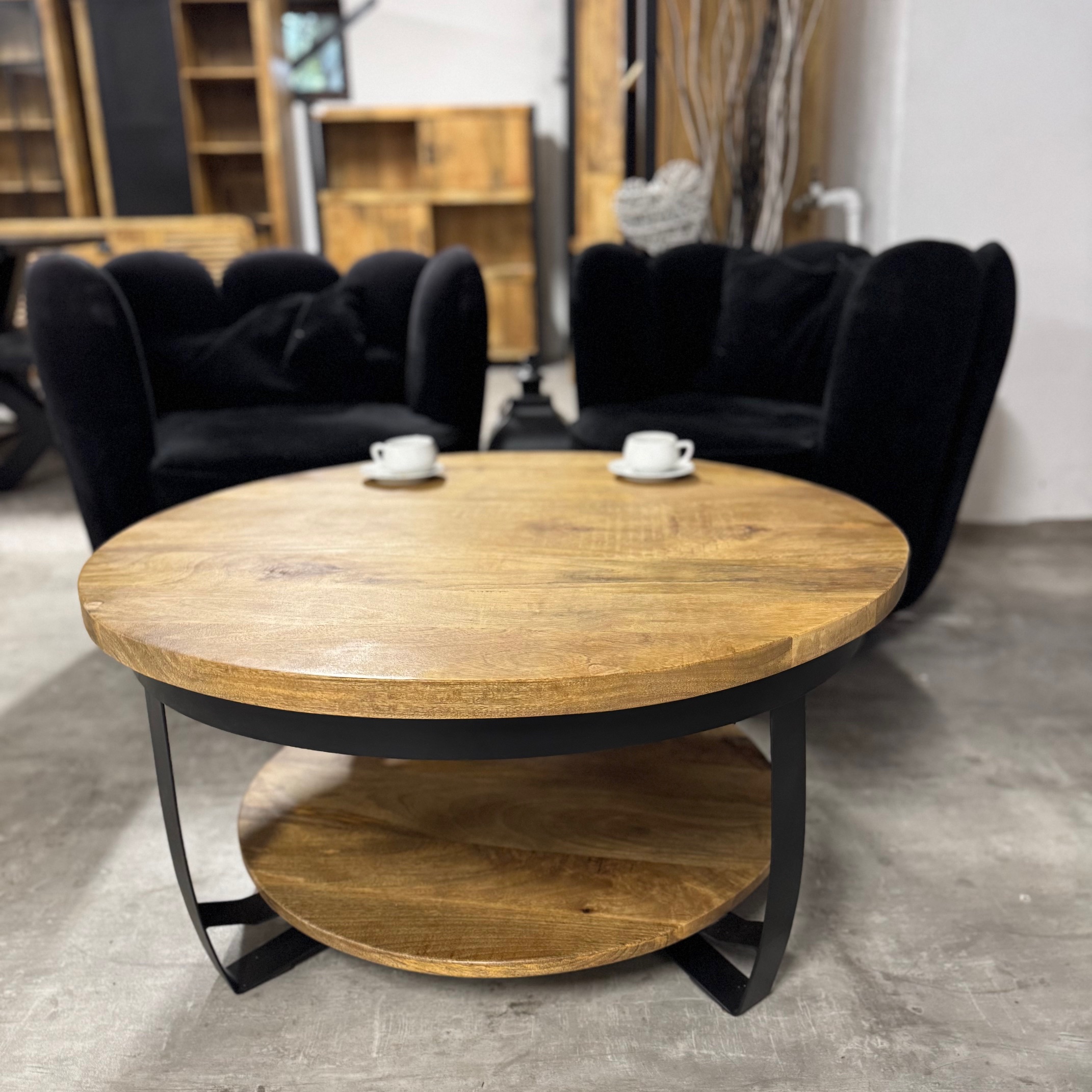 Stylowy okrągły stolik kawowy Naturalne drewno mango od MangoMeble wnosi ciepły, naturalny akcent do każdego wnętrza. Okrągły blat z litego, naturalnego drewna mango z widocznym usłojeniem sprawia, że ​​ten kompaktowy stolik kawowy emanuje czystą prostotą i ponadczasowym urokiem. Elegancka metalowa podstawa jest lekka i elegancka, idealna do stworzenia lekkiej atmosfery bez uszczerbku dla solidności.