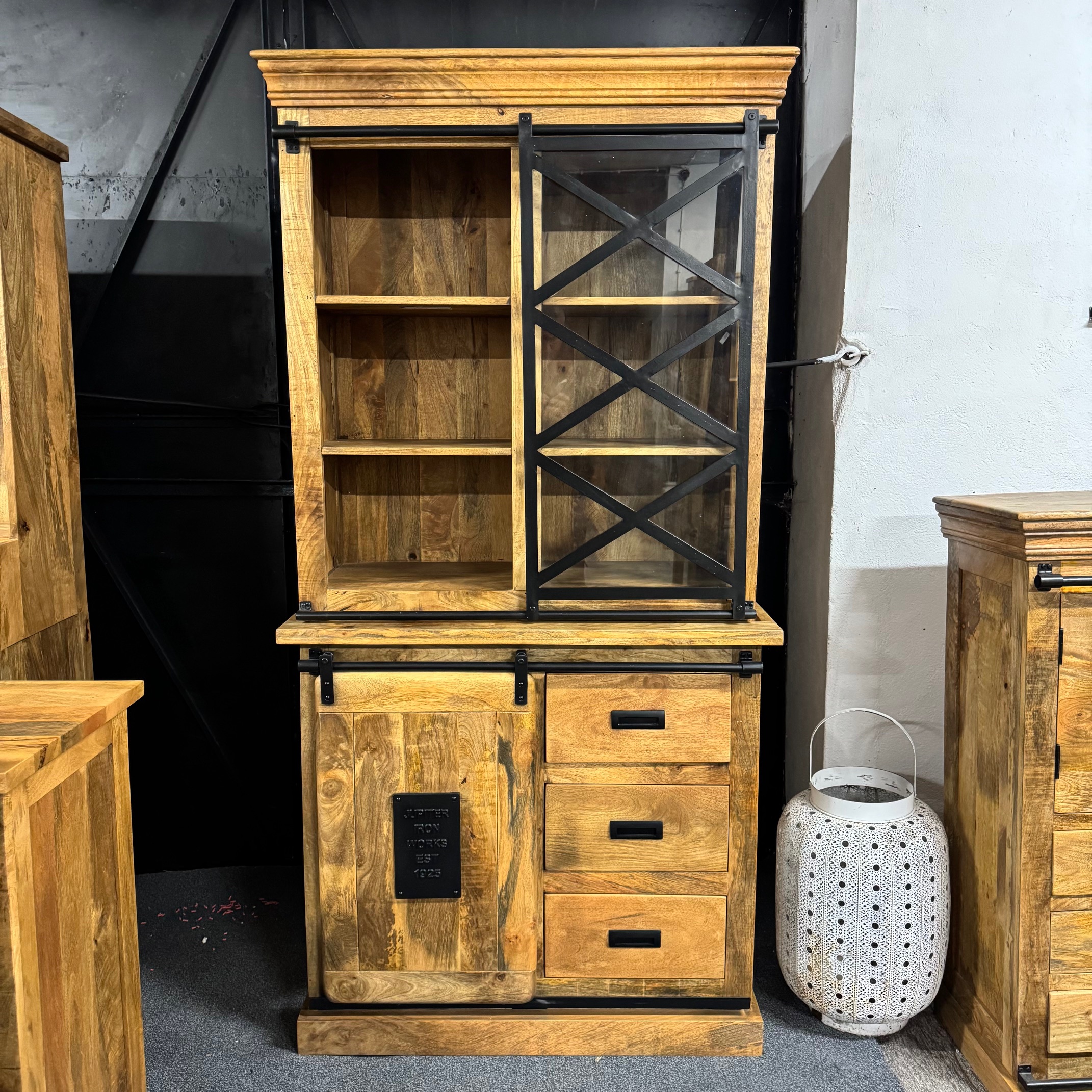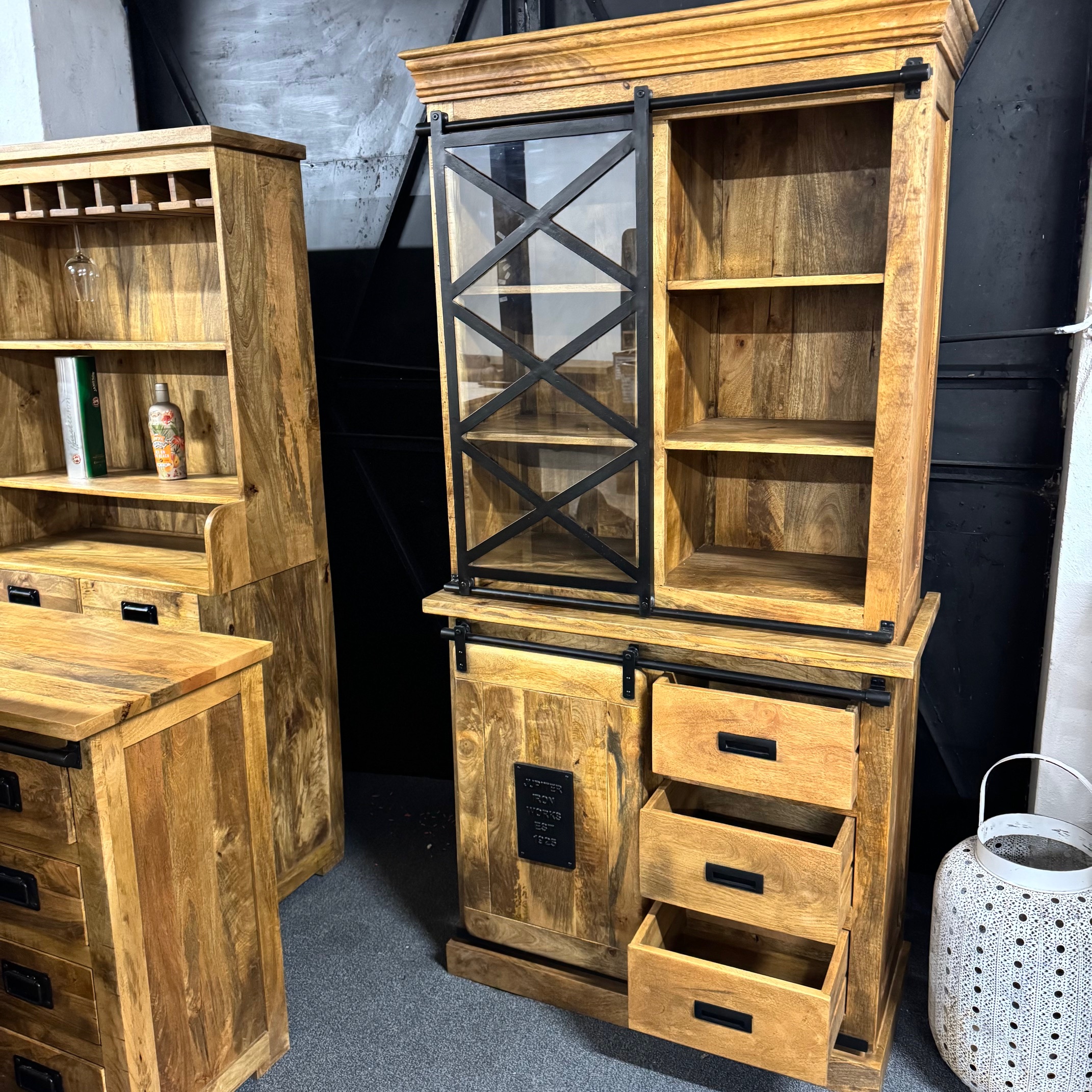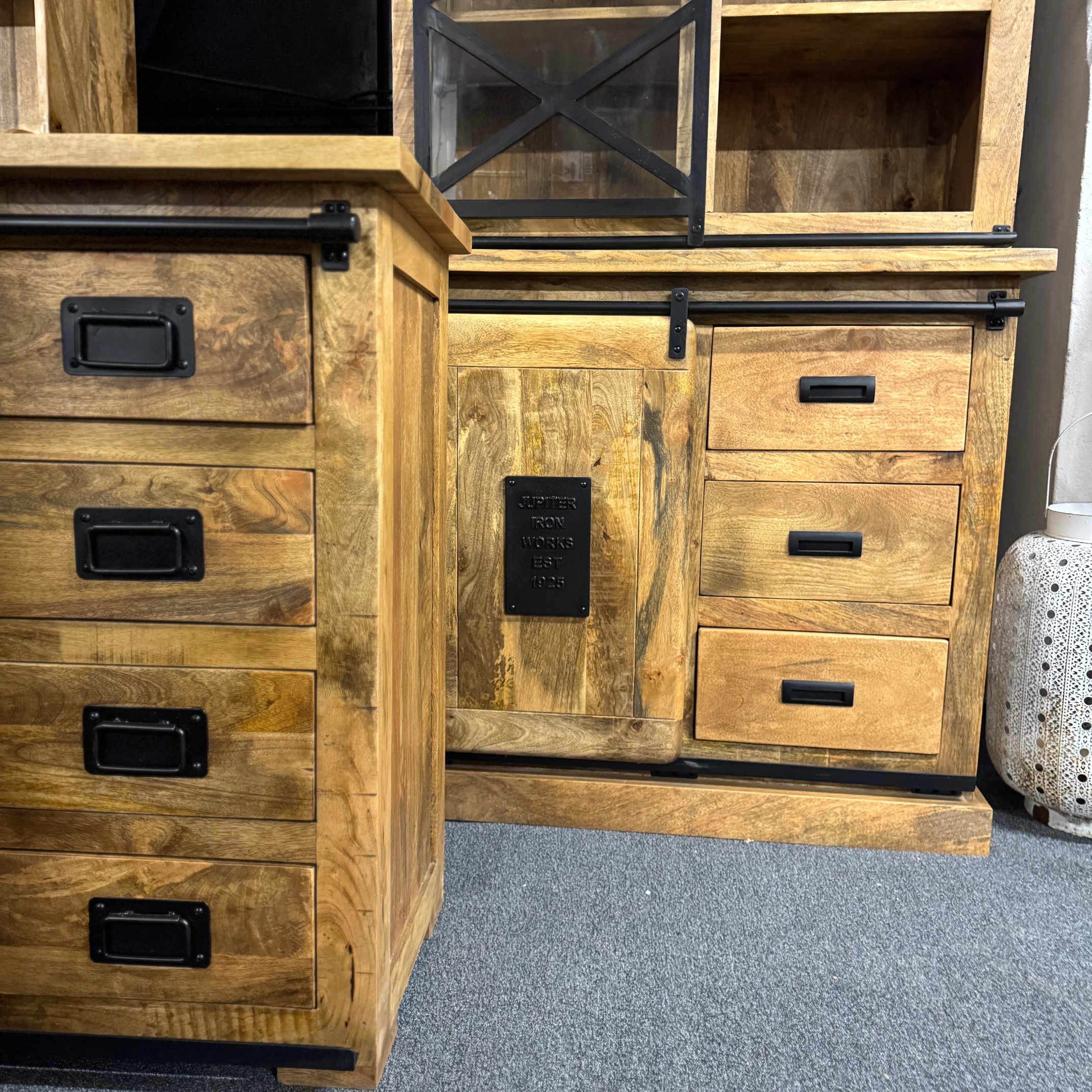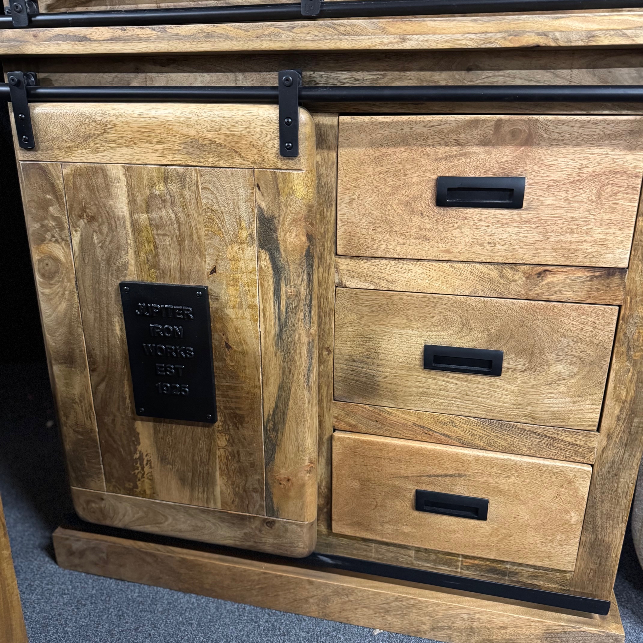 Piekny drewniany bufet serii Works z drewna mango to jeden z najlepszych elementów w naszej kolekcji! Lite drewno mango nadaje jej surowy, industrialny wygląd, który wyróżni się w każdym domu. Górna część może służyć do eksponowania zastawy stołowej i dekoracji, a szuflady i przegródki poniżej – do przechowywania wszelkiego rodzaju przedmiotów co czyni ten drewniany bufet witrynę bardzo pojemnym.