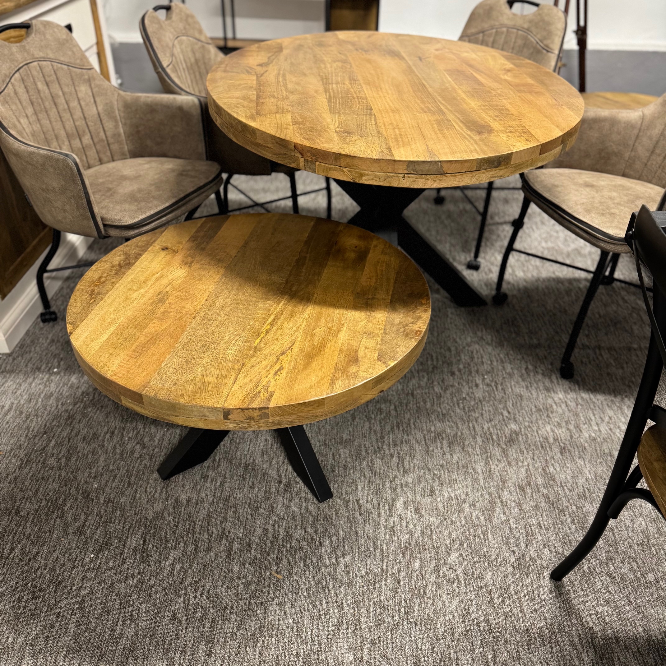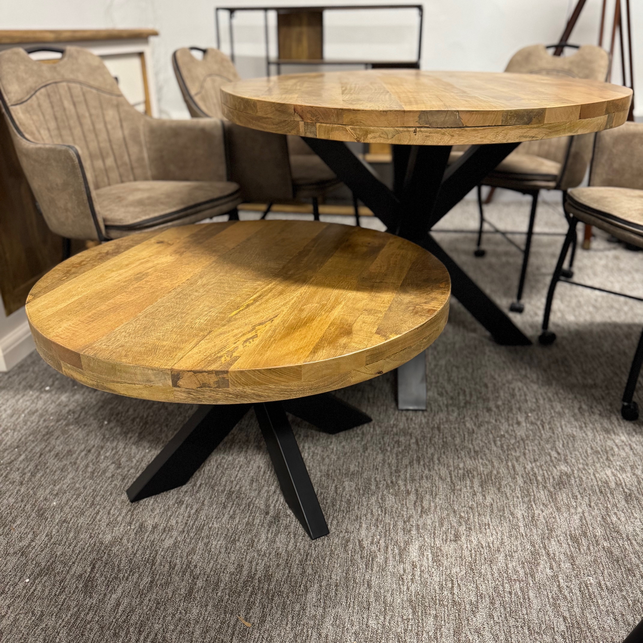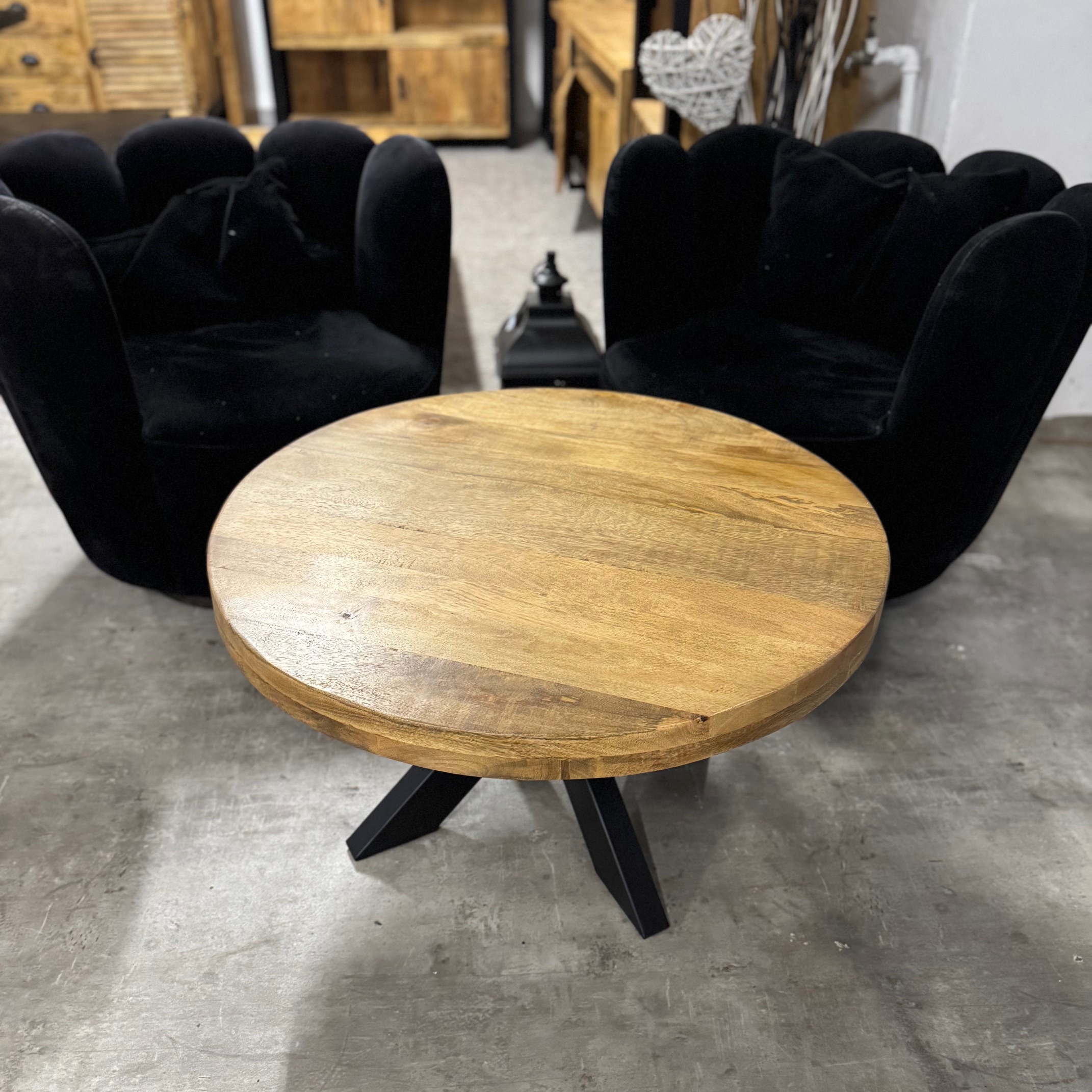 Nasz okrągły stolik kawowy to prawdziwy hit. Ten piękny stolik z drewna mango charakteryzuje się solidnym blatem i matowo czarną nogą typu matrix. W przeciwieństwie do prostokątnego stolika kawowego, okrągły stolik doda Twojemu wnętrzu radosnego, przytulnego charakteru.